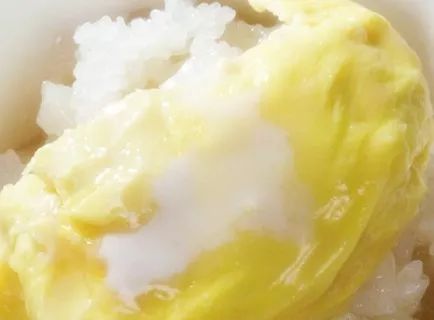 榴莲配饭,死而无憾。把榴莲肉捣碎,直接盖在米饭上,摆盘配菜什么的都是浮云,一碗榴莲盖浇饭就是这么简单任性。我们不禁灵魂中发出一声呐喊:为什么不直接吃榴莲~~