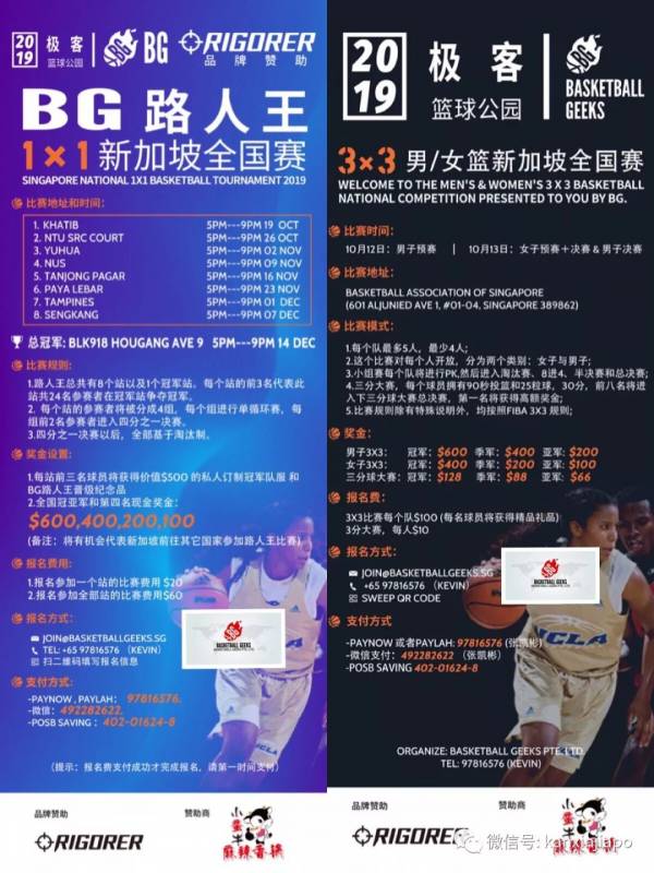 3x3比赛(右图): 10月12日/13日 地点:601 Aljunied Ave 1 #01-04, S389862