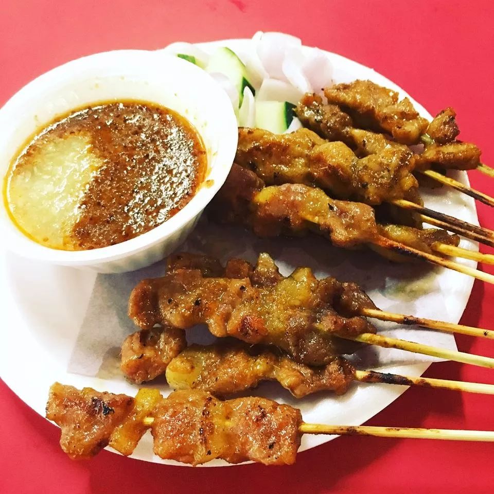 又是一家深藏在小贩中心的美食,做的是沙爹烤串,店小名气却大!