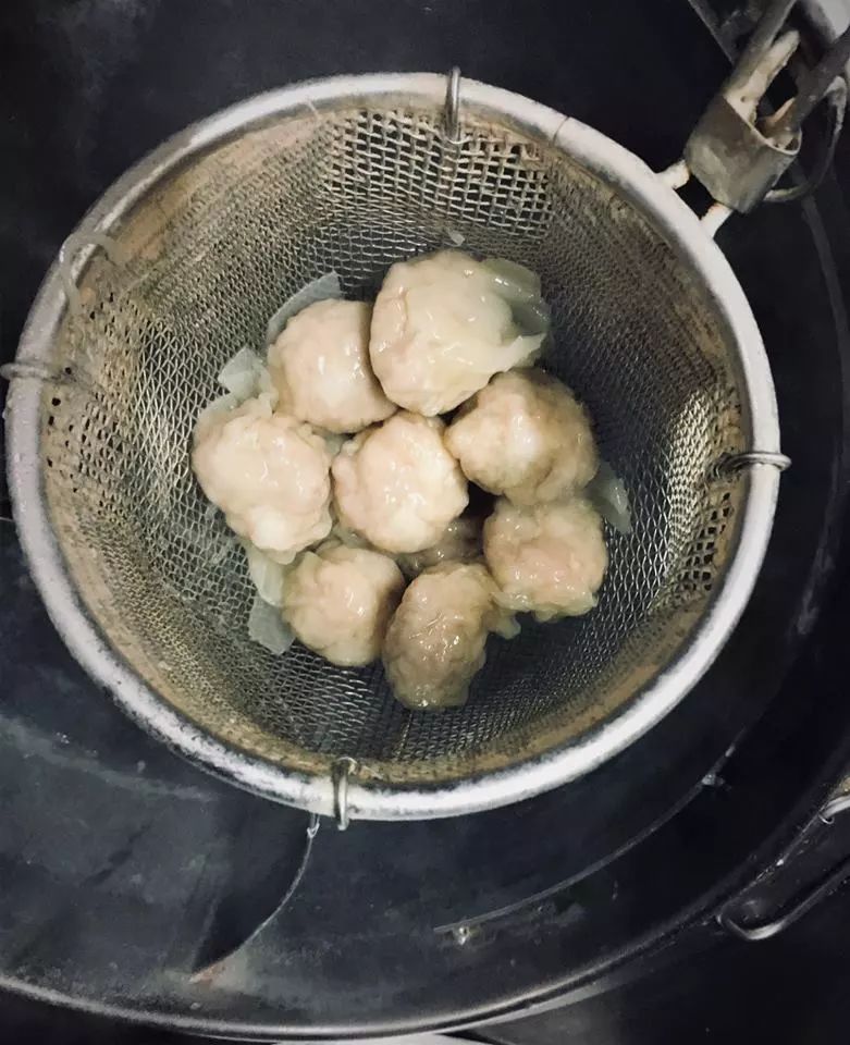 不仅材料丰富,还特别讲究。蛋一定要流黄的糖心蛋,虾子外面包裹着酥脆的面条,还有每天现包的云吞: