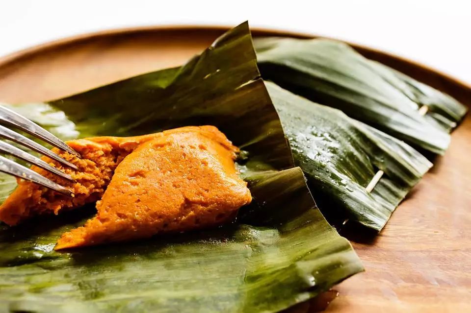 (绵密的米粉蒸熟伴着流淌的黄糖,还有椰丝的香味)