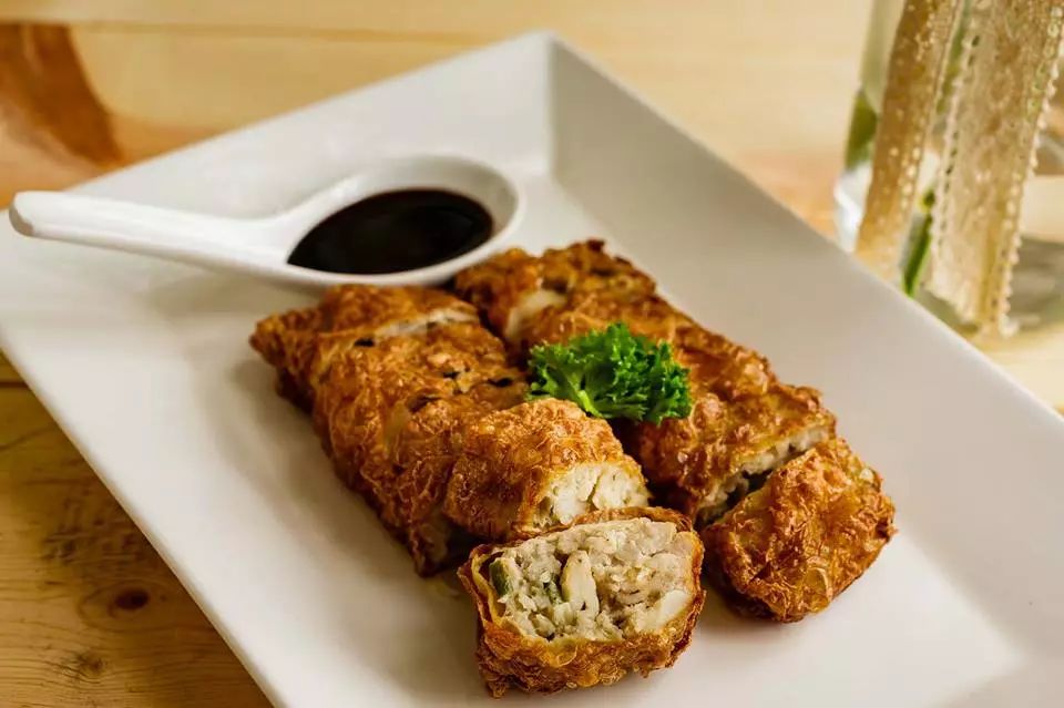(猪肉混合虾肉,配上五种辣椒粉,卷在豆皮里炸到金黄。外面酥脆里面肉嫩,沾上酱汁,一个人一盘都感觉不够!)