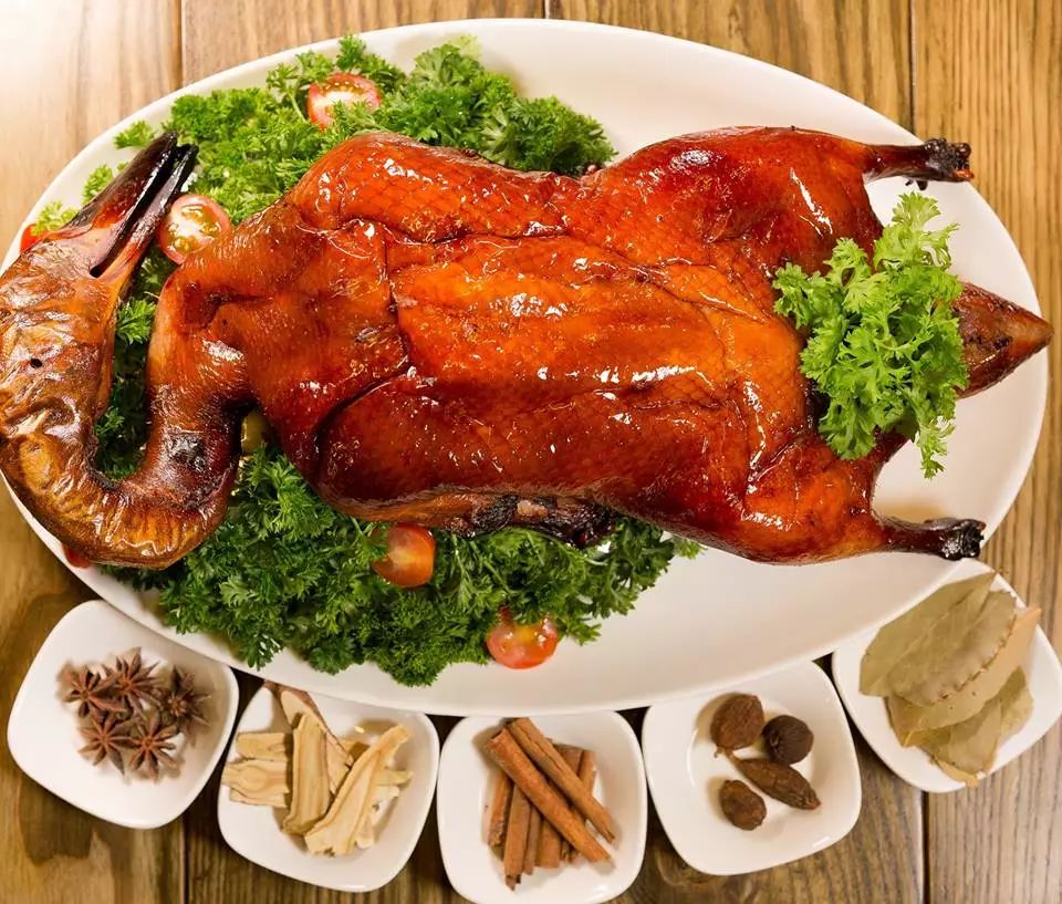 (有了叉烧,怎么能少得了烤鸭?酥脆的表皮,油脂丰厚的肉,还有独特的香料气息。进店必点之一哦~)