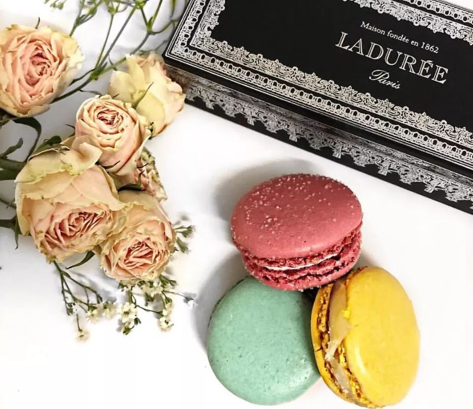 (LADURÉE的马卡龙,被誉为是少女的酥胸,嘴唇轻轻一抿就融化~外层糖衣酥脆,而夹心层软软的)