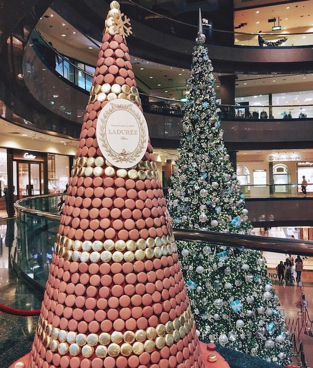 圣诞期间的新加坡高档购物中心义安城,看到过马卡龙做的圣诞树!