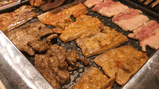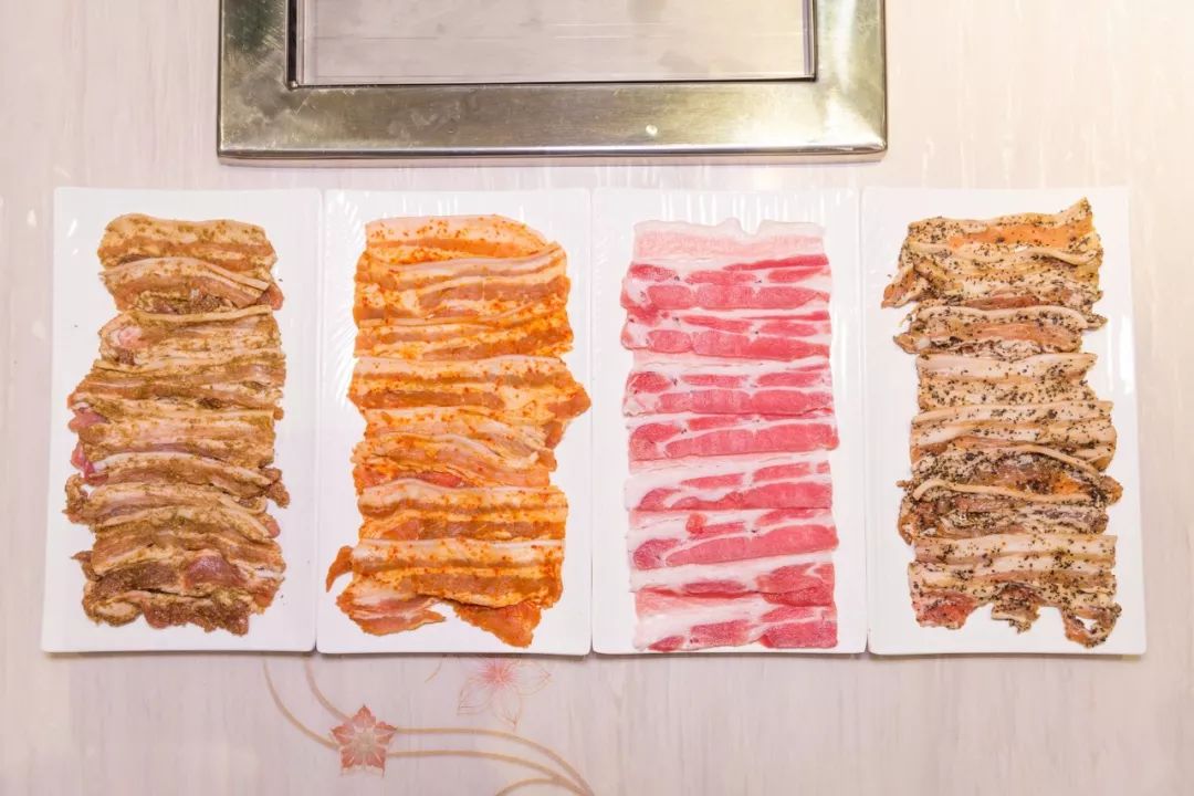 5味烤肉:店里的肉看起来都很有食欲,一片一片干净整齐的在盘子里排排坐。