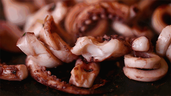 烤制时,鲜美的鱿鱼在铁板上曲卷和滋滋作响,吃个满口,瞬间就满足的不得了。