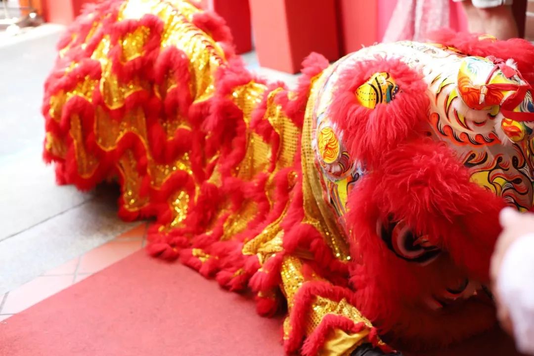 这么重要的剪彩仪式,怎么少得了传统的舞狮呢。