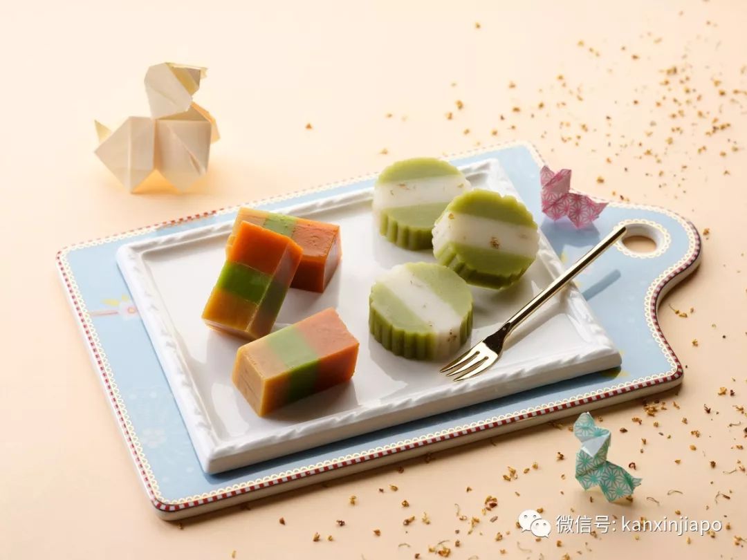 四川豆花饭庄今年推出两款口味创新的年糕($28.80/kg),“三色年糕”红、绿、黄三层分别是传统年糕、香兰叶和椰糖口味。