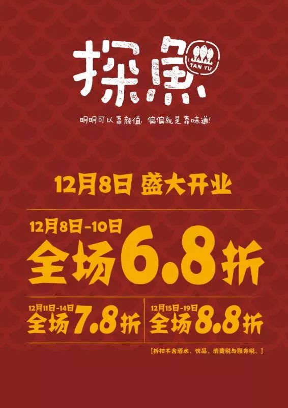流口水ing!告诉你个好消息,探鱼开业大酬宾,全场6.8折哦~