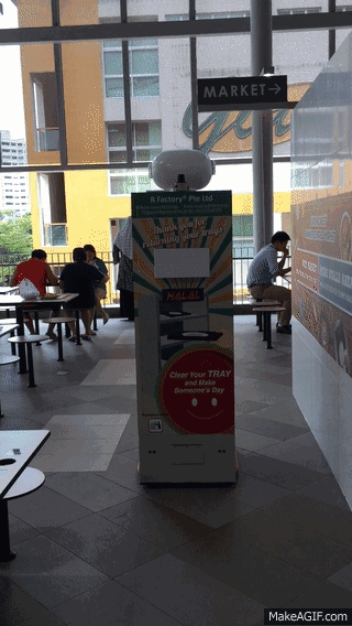 也是因为机器人太爱瞎逛逛了,我们吃完想放盘的时候居然找不到它,所以我们就想直接放回洗盘处,结果洗盘处的负责人让我们去找机器人,啊,多么痛的领悟。