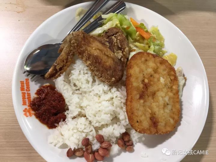 我点了A套餐,$2.8一份,包括一片鸡蛋,一片炸鱼(可选),一根鸡腿和花生小菜▼