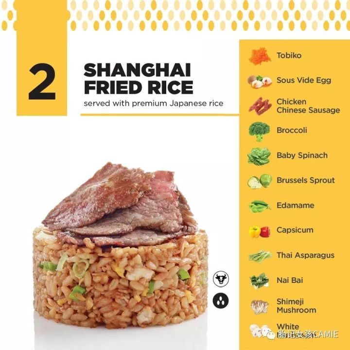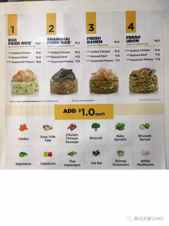 总共有4个系列,蛋炒饭、上海炒饭、炒拉面、炒乌冬。每个系列里各自有三个选择,单份蛋炒饭$5块起跳▽