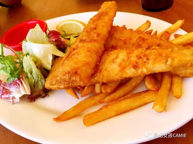 Fish & Chips 炸鱼和薯条,黑暗料理界的扛把子,别看图片不大,分量很大且好吃▽