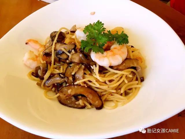 Seafood Aglio 香蒜海鲜意大利面,同事选了不辣的。▽