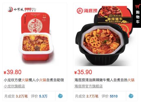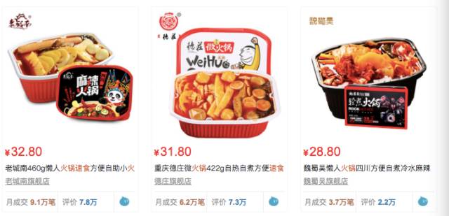 打开某猫才发现懒人火锅的月成交量最高可达9万,而且很多知名的火锅连锁店像海底捞、德庄以及国内火锅界的网红小龙坎也都出了同名品牌的懒人火锅。