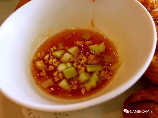 它还专门有自己的专属酱汁。酸辣口味。▽