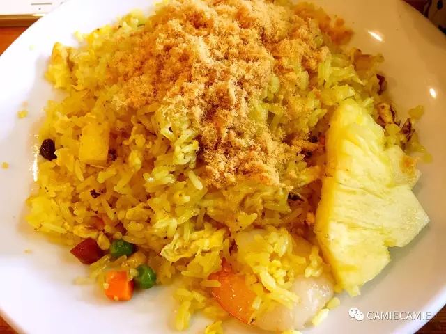 里面其实是没有菠萝的,只有外面两大片菠萝。加了肉松和小葡萄,甜咸适中,我才不会告诉你们我边吞口水边写呢。