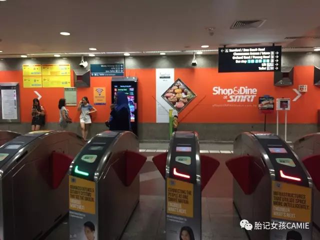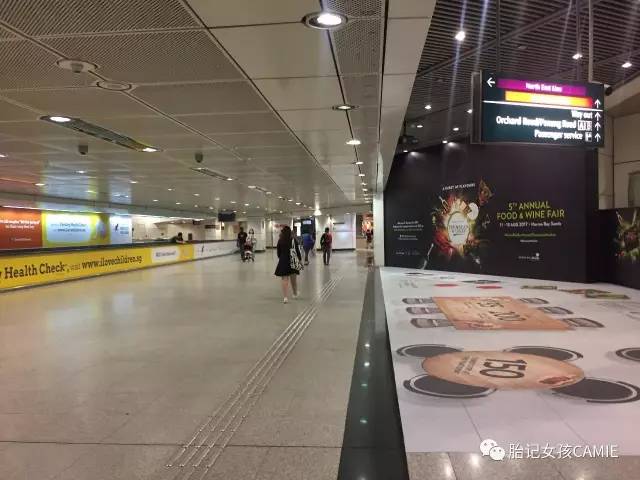 和朋友约好在Dhoby Ghaut 多美歌地铁站,A出口不是很好找,注意看地铁的路线提示:请搭乘前面的手扶梯到地铁A和B出口▽