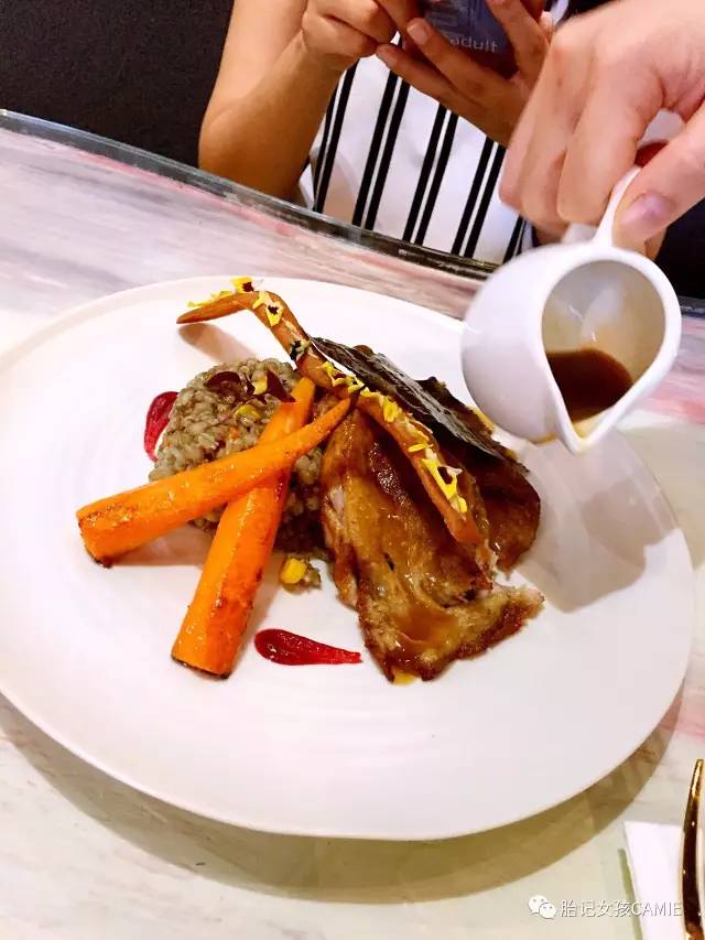 我点的这道是油封鸭(新币$26),一出现就四溢飘香,鸭肉很嫩,米饭挺有口感,但不如Whole Earth的糙米饭。▽