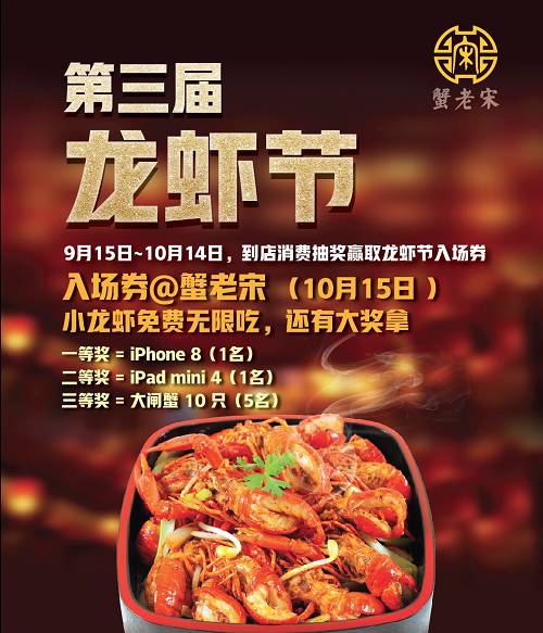 你没有看错,一年一度的蟹老宋小龙虾节,