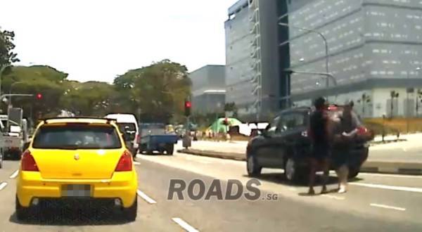 (新加坡5日讯)疑因不满切换车道被轿车鸣笛,洋司机和轿车司机下车对峙,还挥拳打对方,洋司机涉嫌公路暴力协助警方调查。