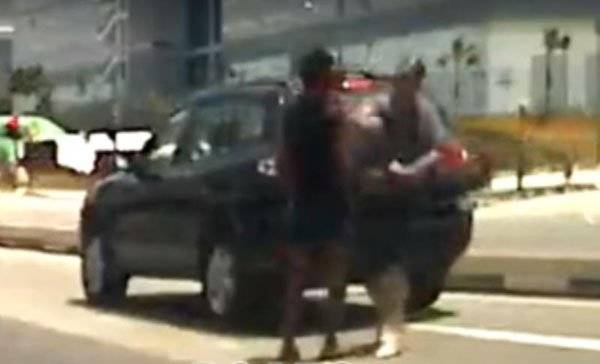 黄色轿车司机被重击后倒退几步,随后疑回到车上拿手机,洋司机则试图前行,但由于前方仍是红灯,他又再度停了下来,黄色轿车司机追了上前,拍下车牌以及洋司机的样貌。