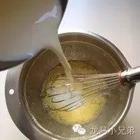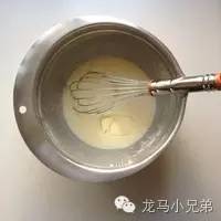 2.打匀后加入60克牛奶和40克奶油搅拌均匀。