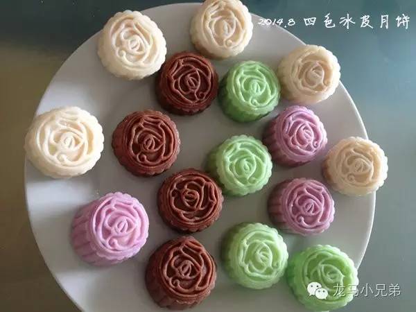 试过不错的一个方子来自下厨房的“四色冰皮月饼”,优点是花纹清晰,不粘模,缺点是放冰箱过两天皮就失去了弹性(这也是很多自制冰皮的软肋)。