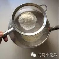 3.面粉,澄粉,奶粉混合后过筛搅拌均匀。