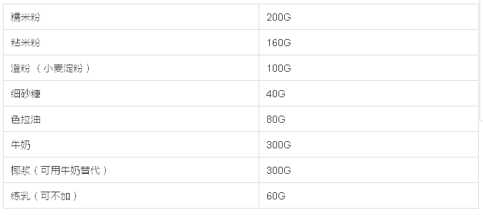 冰皮月饼预拌粉 500g黄油(or白油or植物油)100g凉开水(or纯净水)200-225g馅料 800g工具: