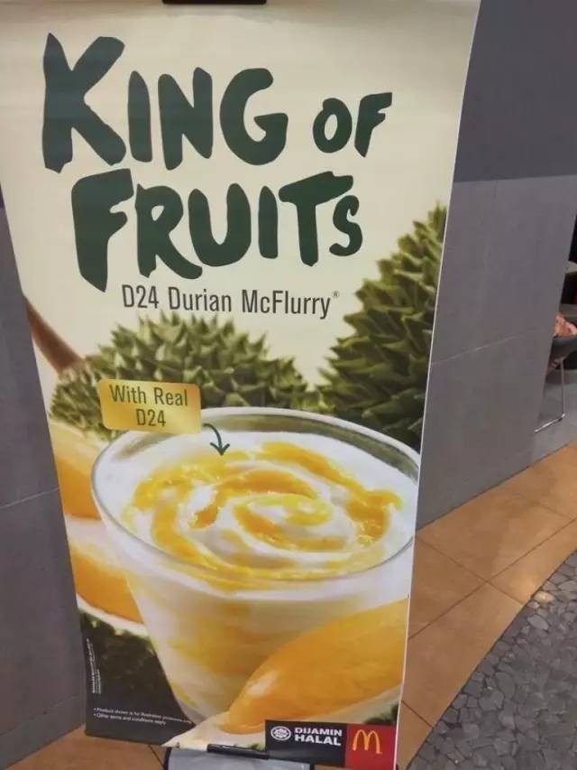 在大马麦当劳门外,已经立起了巨大的招牌,特意突出“内含真正的D24榴莲”