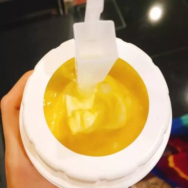 ▲打开就能吃到金黄色的D24榴莲冰淇淋,冰凉、香甜、糯滑,据网友说,还有榴莲的果肉,特别好吃!
