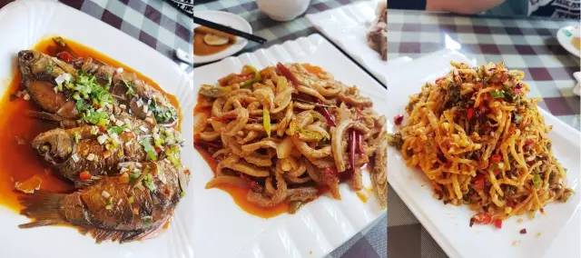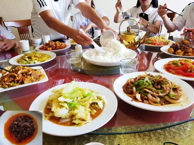 先不要皱眉头,旅行社安排的团餐还真的蛮出人意料的,不仅有土豆鸭、孜然羊肉、红烧鱼这样的硬菜,还有非常爽口的彩椒、西红柿炒鸡蛋,没有一鸣惊人,却吃的相当顺口!