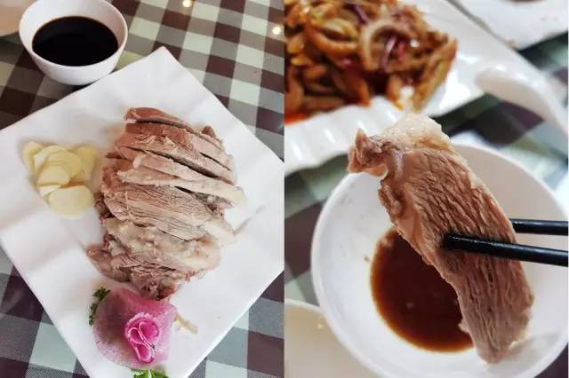 羊肉上来时是有一点温的,但却并没有通常冷掉的牛羊肉那样有膻味,或者变硬,蘸上蒜泥汁,还没送到嘴里,香味已经扑鼻而来,紧接着一大口羊肉嚼在嘴里,三分肥七分瘦,肉质不柴不烂,肉汁丰富,真是说不出的满足。