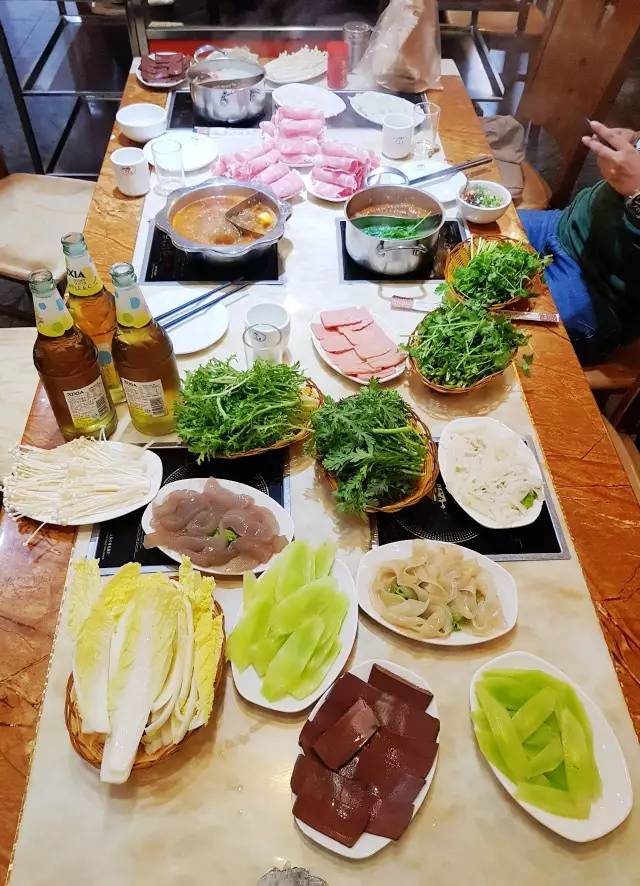 菠萝味啤酒那是首选,羊肉口感出乎意料的好,鸭血、茼蒿、鸭肠、魔芋,这些在新加坡吃不到或者很难吃到的东西,都能一次满足,关键是食材都很新鲜,火锅就是可以让你和队友一直吃一直聊,直到天荒地老而一点没有察觉的东西!