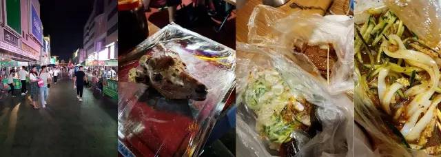 最下的羊头纯属拍照啊,我可没有勇气抱着它啃,这是辣羊蹄摊子上的。结束夜市最好的办法是把暂时吃不下去的,都打包拿回去吃!冲个凉洗个脸,又是一个全新的自己,就算是两份正宗的大武口凉皮,也不在话下。