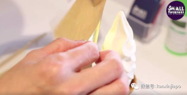 冰淇淋本身是用北海道牛奶、海盐等制作的,据说味道还不错~之后再在上面裹上一层食用金箔,或是银箔~