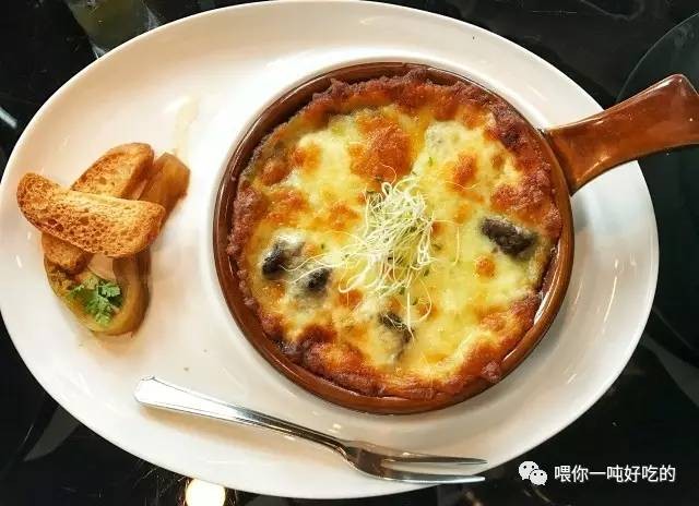 看起来像极了法国蜗牛的那道菜。但实际上在厚厚一层芝士下面藏着一粒粒的纽扣菇,口感什么的还是和法国蜗牛有那么些神似,同样也是值得一试的哟。