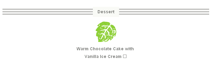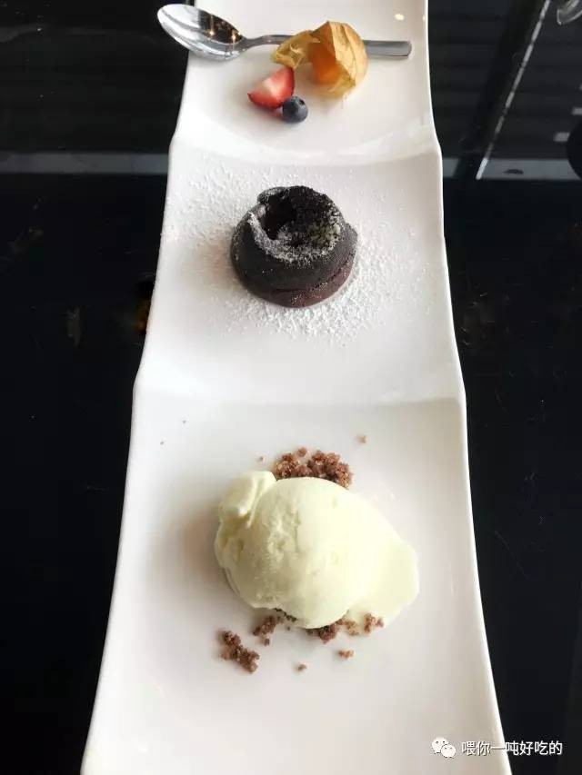 夹心热巧克力蛋糕,用小勺子轻轻挖下一点,热巧克力就会欢快的流出来。和别家的相比,这里的热巧克力不会太甜。一口巧克力蛋糕,一口香草冰激凌,一热一冷,冰火两重天,值得一试的餐后甜点。