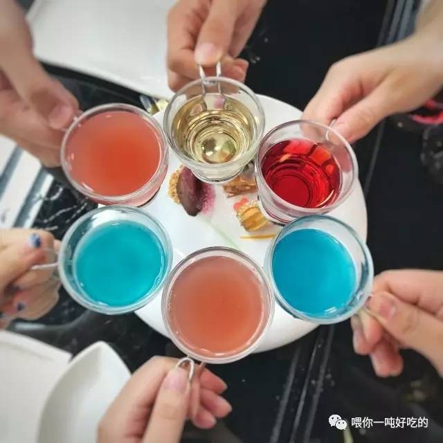 餐后饮品都特别棒,五颜六色,在阳光下显得特别的诱人。