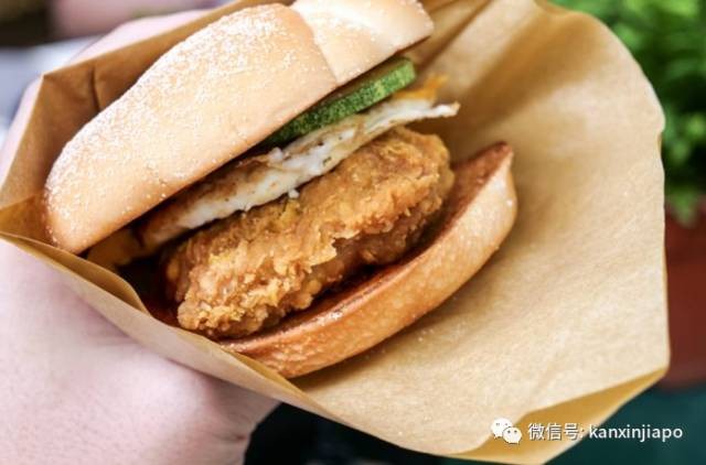 先说椰浆饭口味汉堡,在两片面包里,夹着的是椰浆口味的鸡腿肉、鸡蛋、焦糖洋葱、黄瓜片和參峇酱。而且,这款汉堡还特意用油纸来包裹。