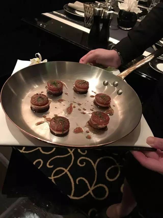 这是鸭肉配菜,日本萝卜中间夹法国鹅肝。