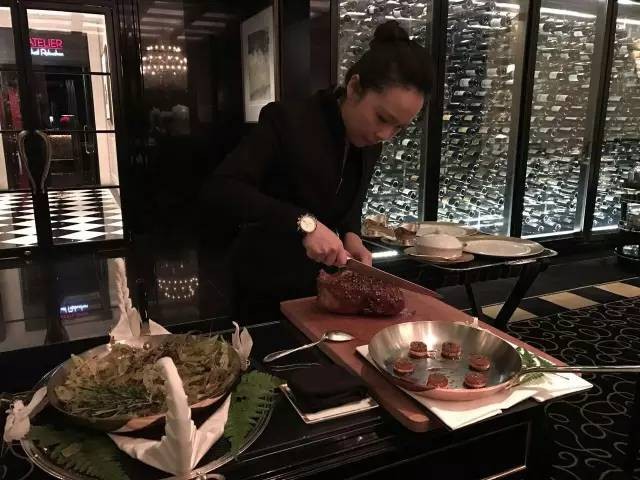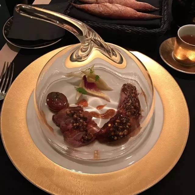 大主菜是烤鸭子配茴香籽酱汁,整只鸭子2个人享用,由工作人员现场为我们切割。
