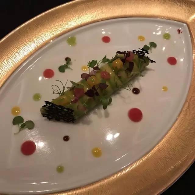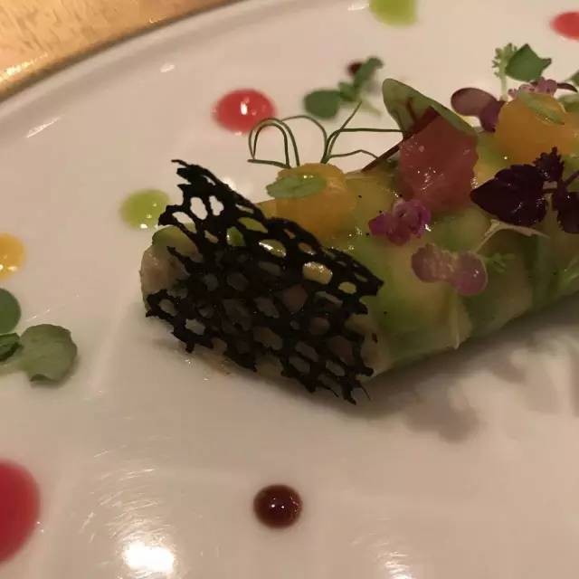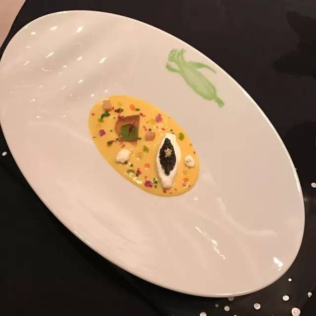 第二道前菜属于冷菜系。蟹黄汁配上鱼子酱,藏红花。口感香甜不腻,一定是女士们的最爱。
