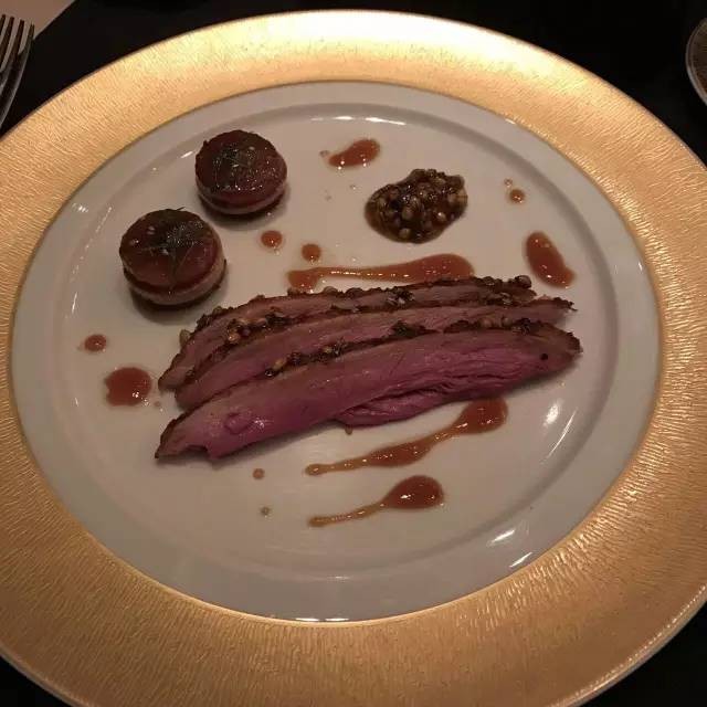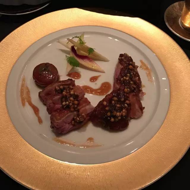 这道菜分2次上菜,第一次是鸭胸肉,鸭肉5成熟。