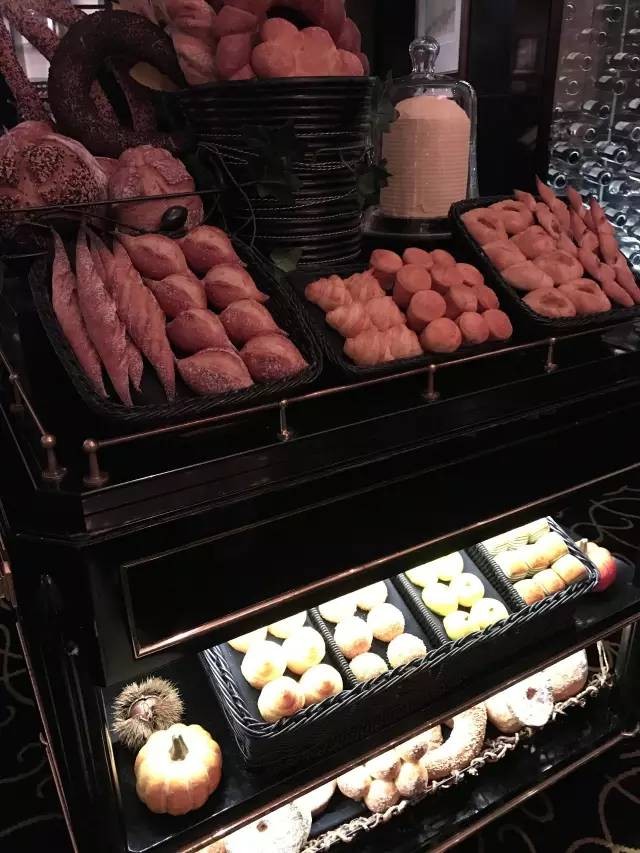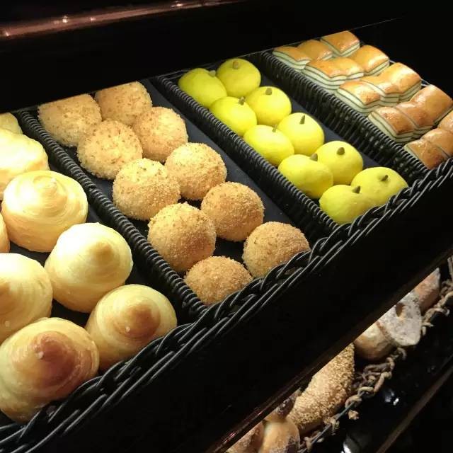 里面的品种很丰富,有法式的法棍,羊角面包,德国的小硬壳面包,西班牙的火腿面包,还有中式的点心,任你选择。