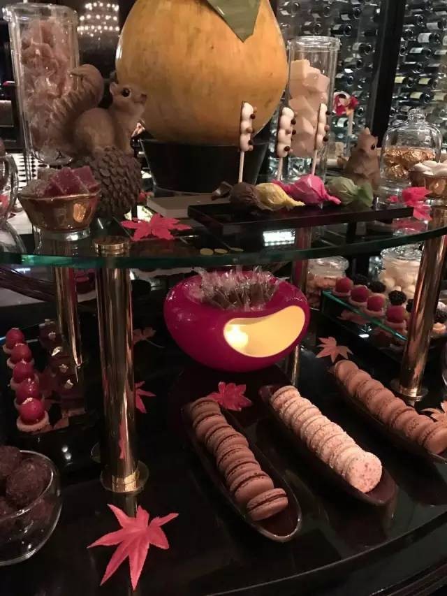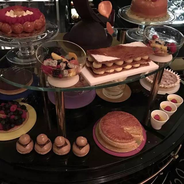 甜品车登场,这是包含在套餐里的,这也是无限量免费供应,你吃多少拿多少,都是法国的传统甜点和手工巧克力。