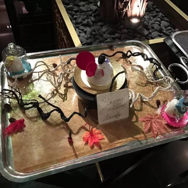 餐厅是可以为客人过生日的,但是要提前预约,主厨会为客人准备很独特的生日蛋糕,看~这就是客人的生日蛋糕,是不是很艺术?