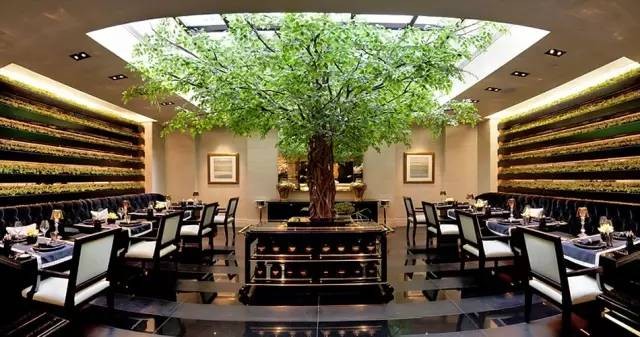 ▲在餐厅中间有棵大树,让人有在户外用餐的感觉,很自在(据说有这样设计的另一间,在美国拉斯维加斯)。
